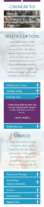 Due to multiple residence and care locations, information was scattered across several sites and sections, often leading users to areas with no way back and no easy way to compare information between locations. Within each location, some information (hospice care, for example), existed within its own microsite, thus further complicating the user journey and marring the user’s ability to compare information from other locations or further explore the location within which they were currently exploring.