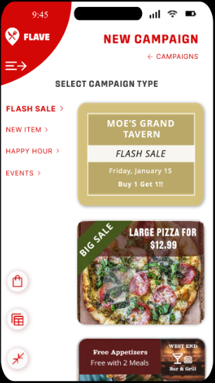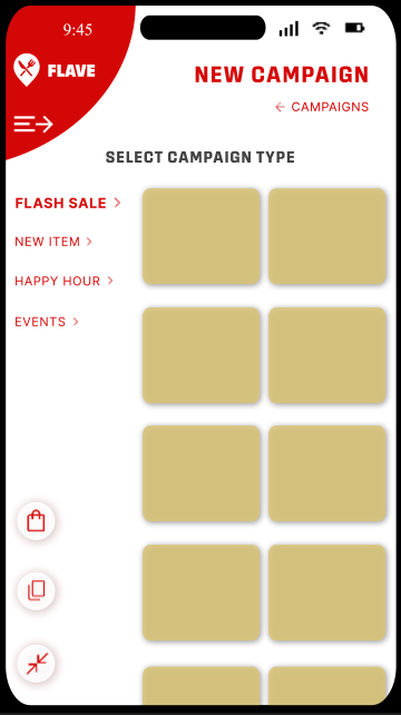 We wanted to keep the options light for the sake of efficiency as being able to build campaigns quickly will be an asset to restaurants when already pressed for time. Offering a large range of templates in exchange for Flave Points offers more expansive options while maintaining a simple design.